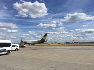 Nach den endlosen Kontrollen und Scans am Frankfurter Flughafen ein spontanes Konzert: