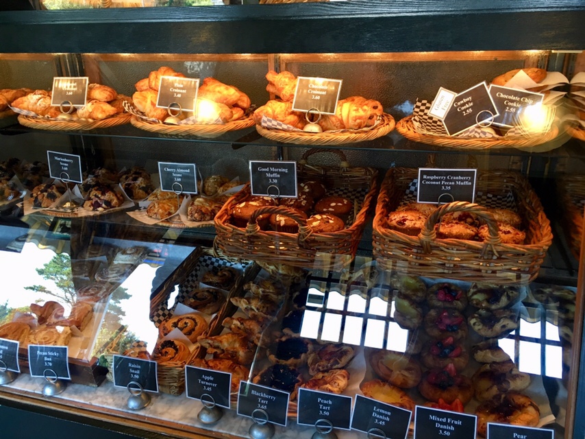 Die Bäckerei ist niedlich eingerichtet und solltet ihr jemals durch Gearhart kommen, dann lohnt sich ein Besuch auf jeden Fall für einen Kaffee und ein Schokocroissant, oder was auch immer ihr in der Auslage findet. Ich bin ja ein Cinnamonroll-Fan (hier links unten im Bild).