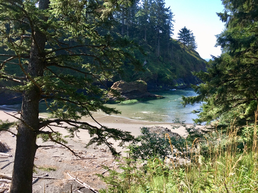 Es geht bergauf und -ab und bringt uns zu einem kleinen, unberührten Strand: