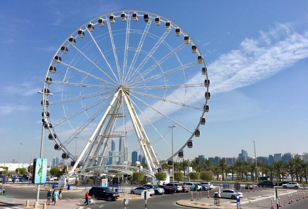 Der Big Bus fährt dann auch wieder zur Marina Mall, von der ich gestern schon kurz erzählt habe – das Riesenrad hat natürlich immer noch eine tolle Aussicht auf Abu Dhabi, auch bei Tag.