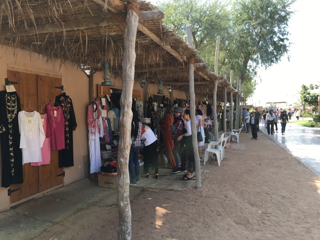 Unser erster Stop nach dem World Trade Center Souk: das Heritage Village. So eine Art Freiluft-Museum mit Beduinenzelt, nachgebauten archäologischen Stätten und Kunsthandwerk – natürlich auch Souvenirshops.